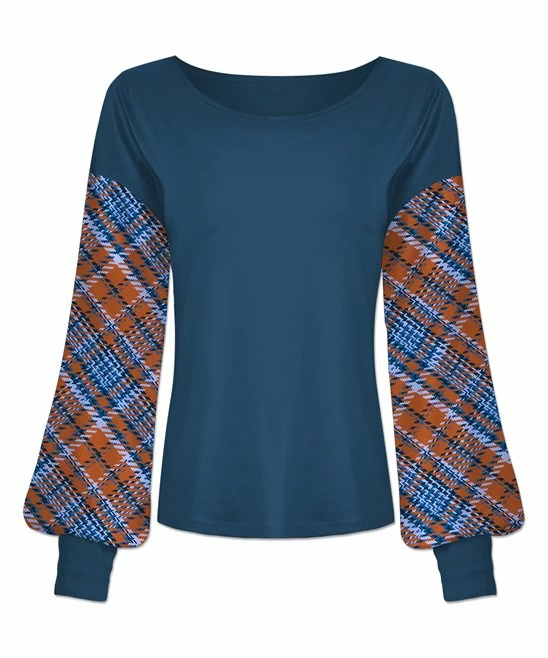 Make a statement with this eye-catching crewneck top boasting billowy bishop sleeves and a dash of stretch for added comfort.