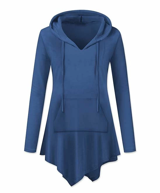 Show off your fashion instincts in this solid-hued hoodie created with stretchy knit fabric for comfortable style. A unique handkerchief hemline adds a trend-driven finishing touch.