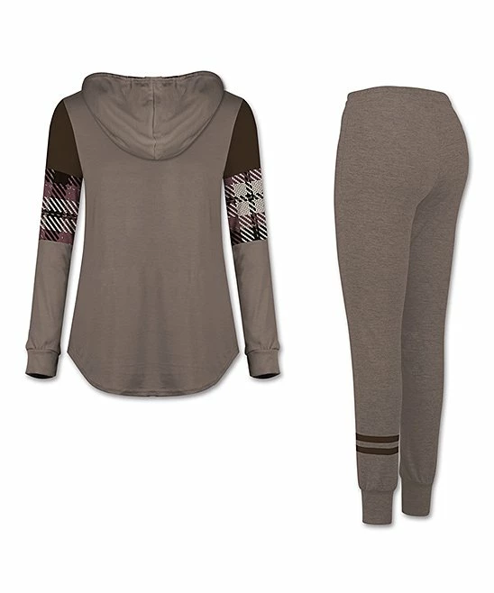 - Includes coffee plaid hoodie and coffee stripe joggers
