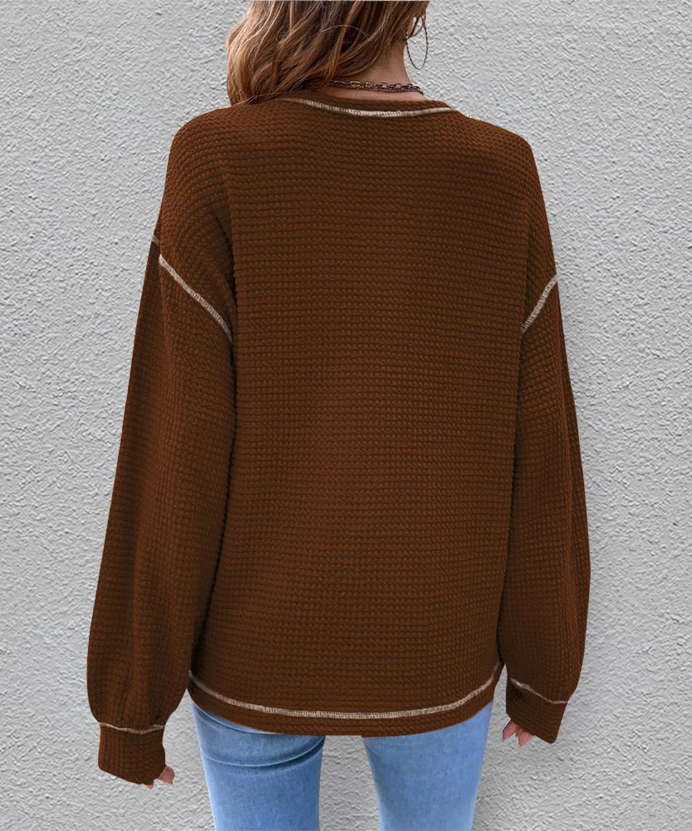 Crewneck top featuring a classic waffle-knit design and a contrast stitching.