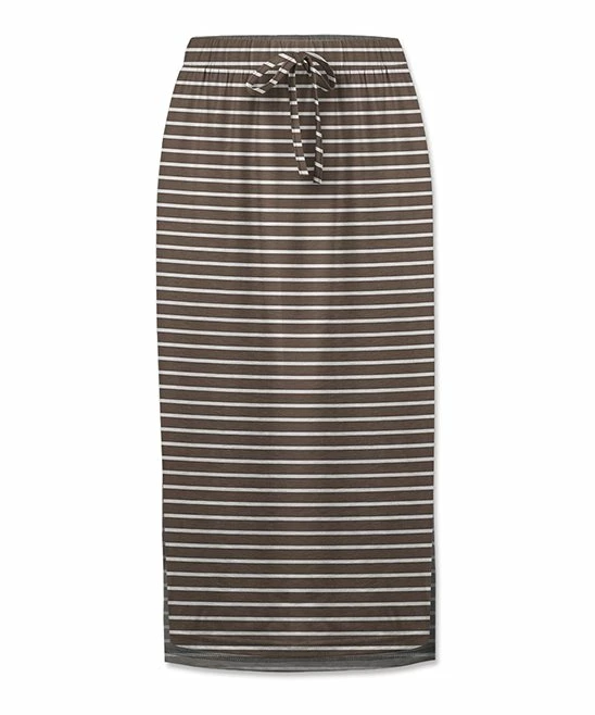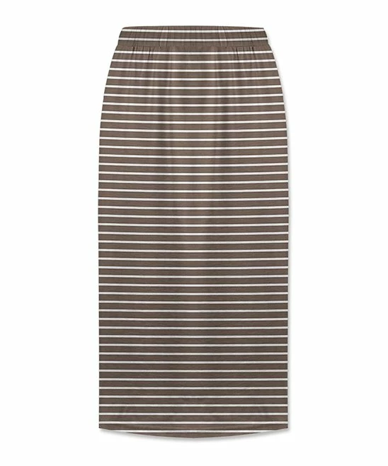 Maximize your wardrobe potential with this versatile midi skirt dressed in a classic stripe that pairs with crop denim jackets and sleeveless tops.