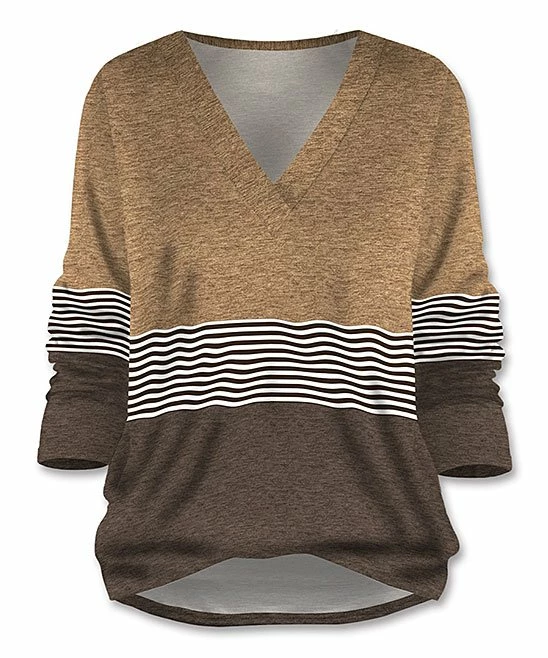 Amplify casual attire with this V-neck top that flaunts a showstopping print on comfy, stretch-infused fabric.