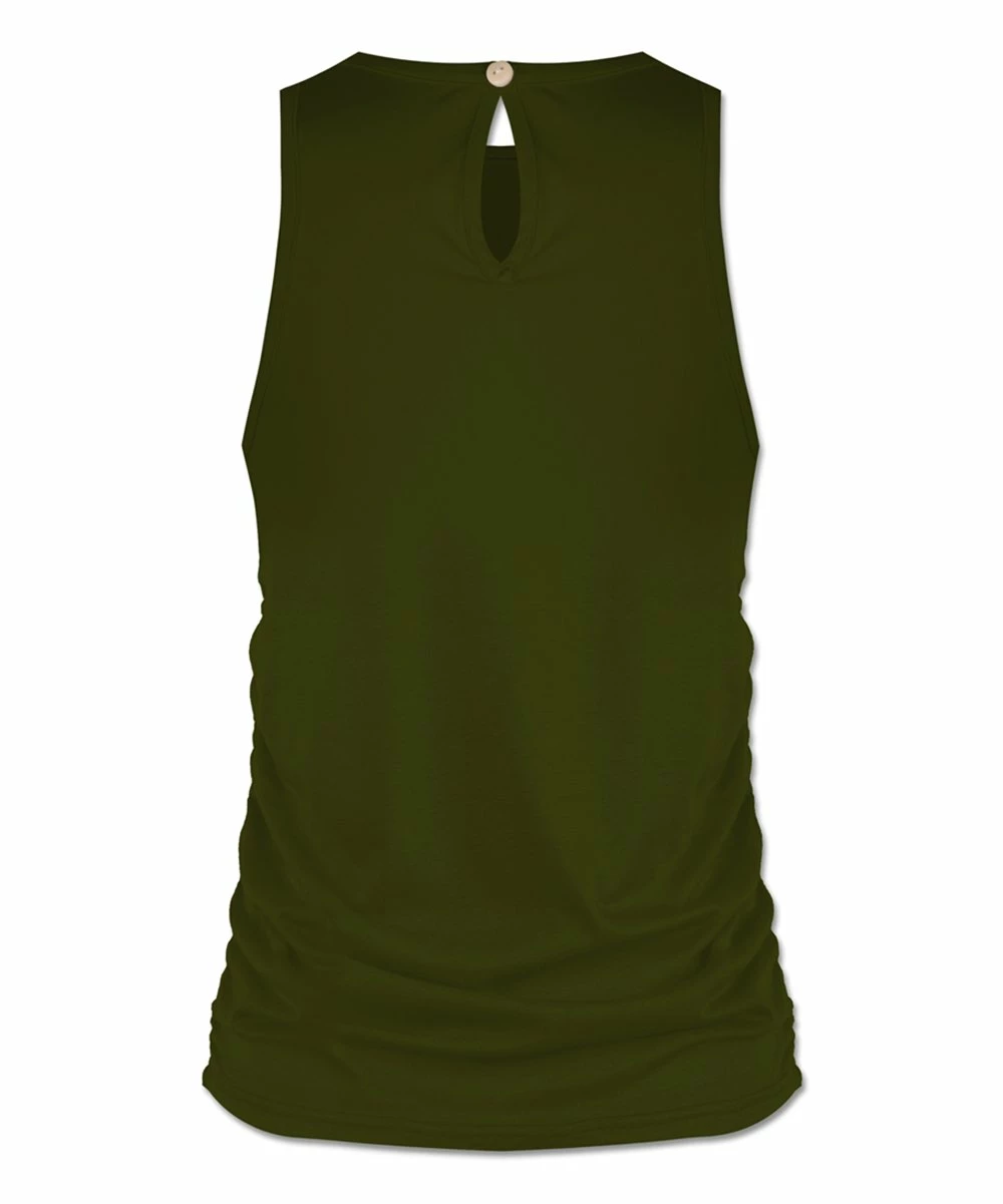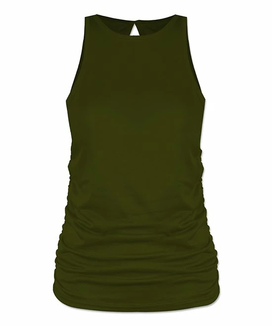 Opt for simple, sophisticated style in this stretchy tank featuring a high neckline and flattering ruching along the sides.
