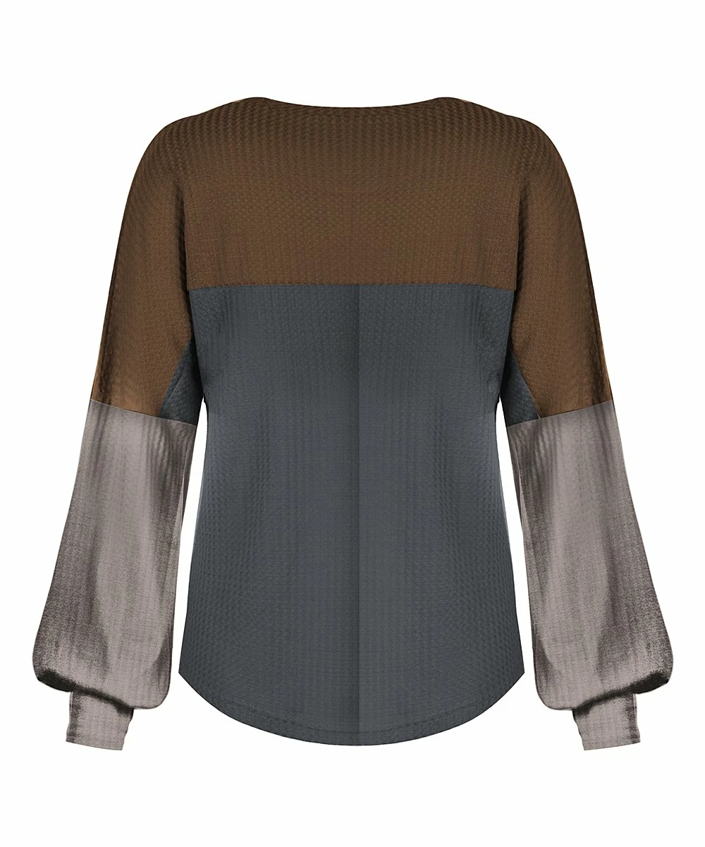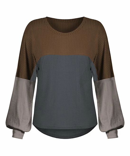 Bring elegance into your closet with this chic, bishop-sleeve top with a bold, color block design.