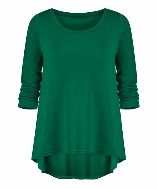 Enhance your ensembles with this top that shows off a dramatic hi-low hemline. A scoop neck offers plenty of room for your scarves and statement necklaces.