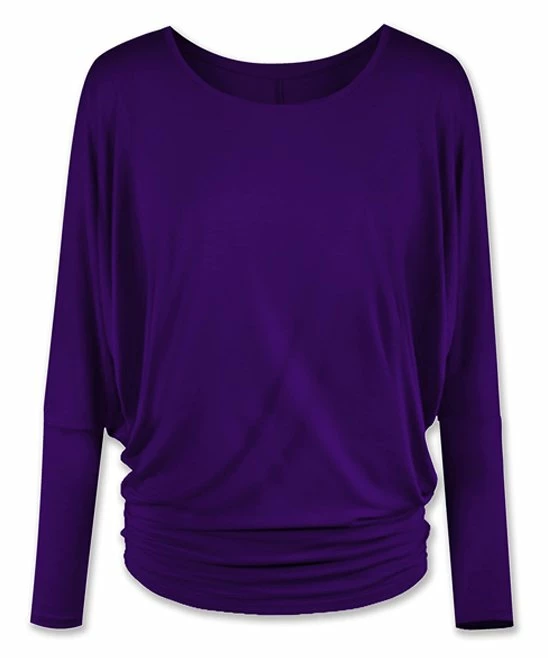 Give your weekend look new dimension with this scoop neck top that shows off a mod profile created by deeply cut dolman sleeves and a banded hem.