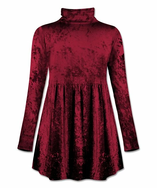 Made from lustrous crushed velvet fabric with a comfortable hint of stretch in the mix, this long-sleeved tunic flatters with a mock neckline and a flowing empire-waist silhouette.
