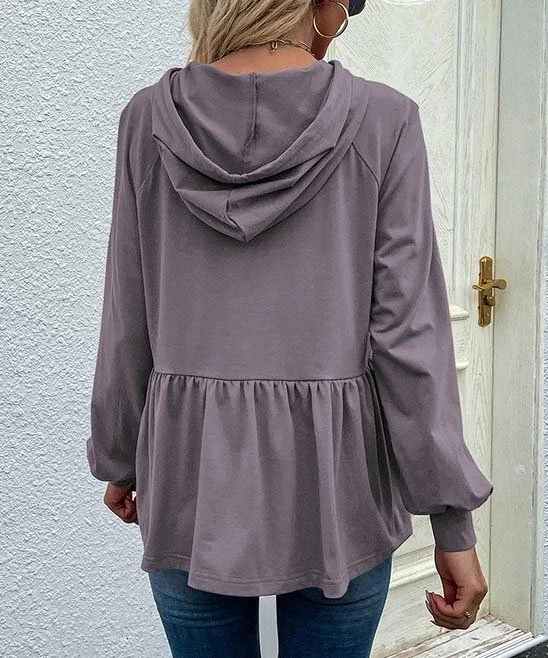 Upgrade your casual wear with this long-sleeve top showing off a hooded neckline and a shirred panel near the waist that adds a dainty touch.