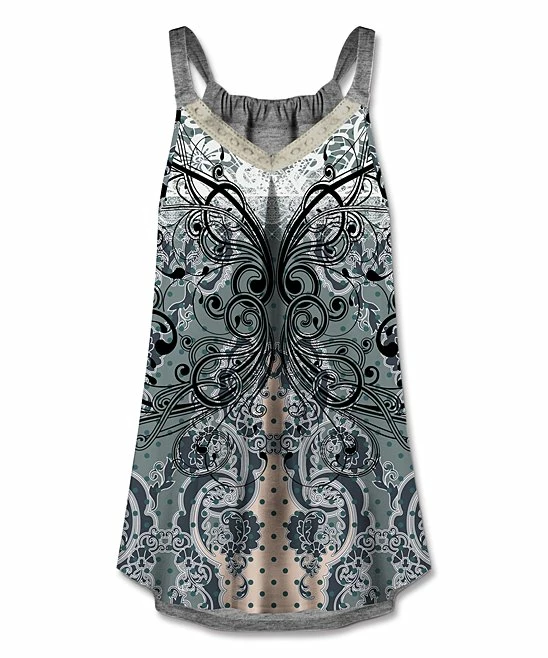 Enliven your sunny-day ensemble with this stylish sleeveless top featuring a bold print. A gathered neckline adorned with lace provides a flowy, flattering fit.