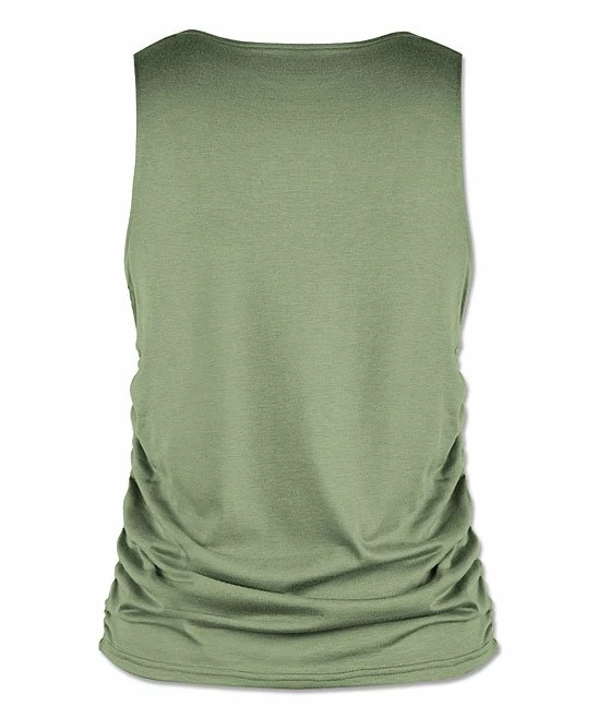Craft your easygoing ensembles with this sleeveless v-neck top fashioned with ruched texture and a hint of stretch for daylong comfort.