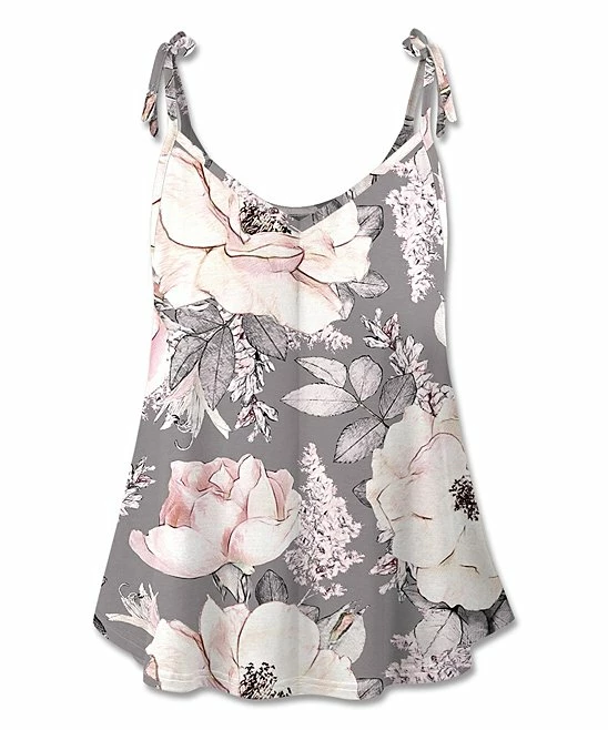 Greet warm days with refreshing style in this flowy tank. Ties accent the shoulder straps with simple whimsy and stretch-blend fabric keeps this style feeling comfy.