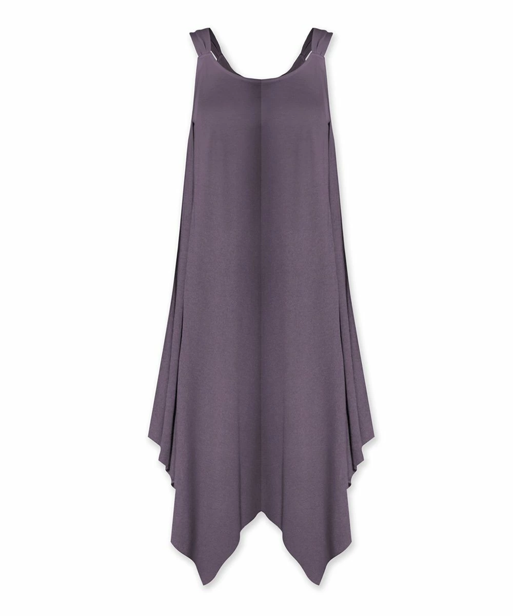 Set trends in this flowy dress that flaunts a breezy sleeveless style and a draping handkerchief hem. A dose of stretch in the material makes for a comfortable choice as you move through your day.