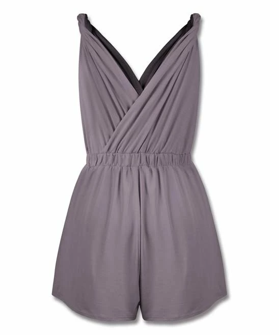 Step out in spectacular style with this sleeveless romper. The deep v-neckline and back are fashionably enhanced by beautifully twisted straps that, in turn, create an elegantly ruched bodice.