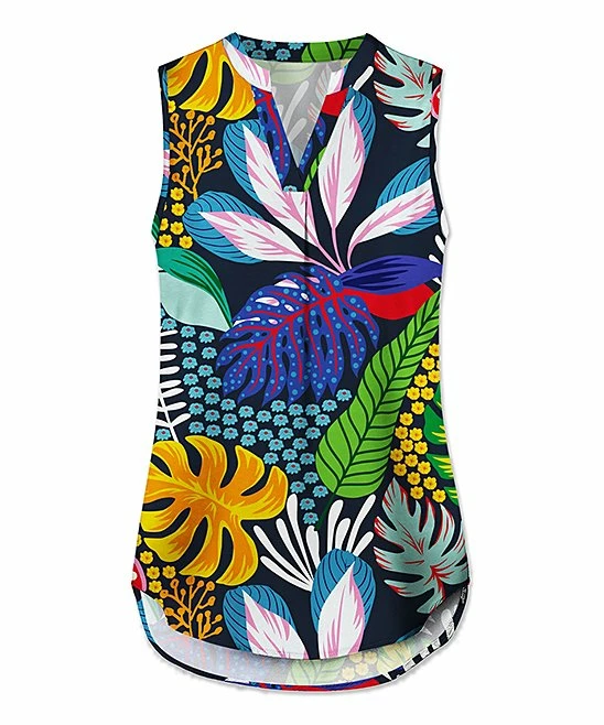 Perk up your sunny-day style with this playful printed top that’s sleeveless to let your shoulders breathe.