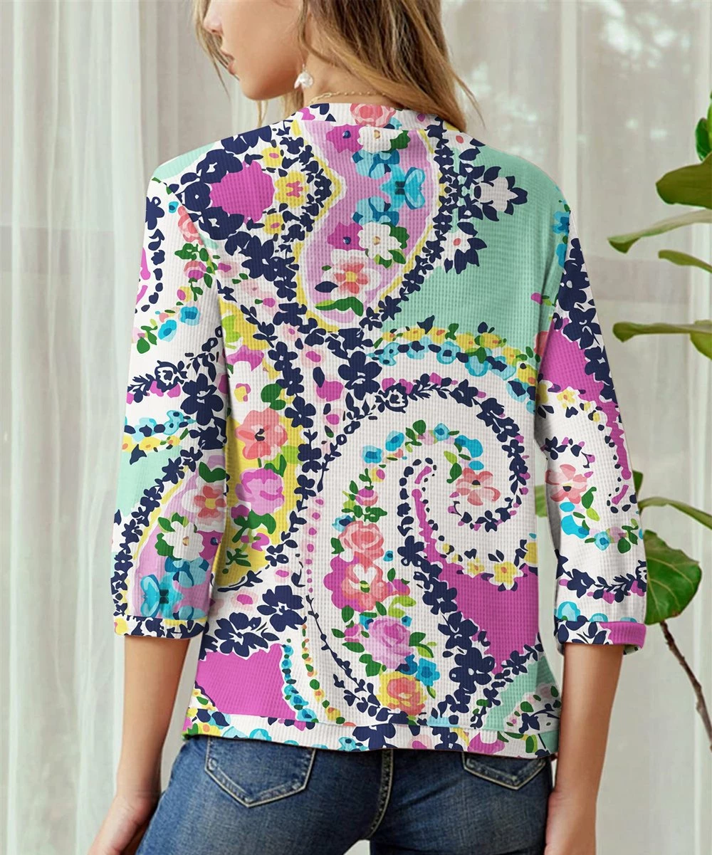 Three-quarter sleeves and an open design lend a laid-back look to this stretch-blend cardigan.