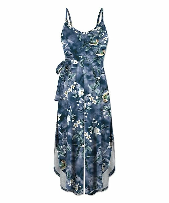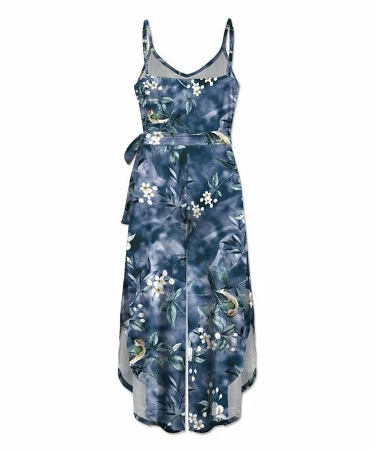 This sleeveless jumpsuit features billowing legs and a tie waist to highlight your natural figure.
