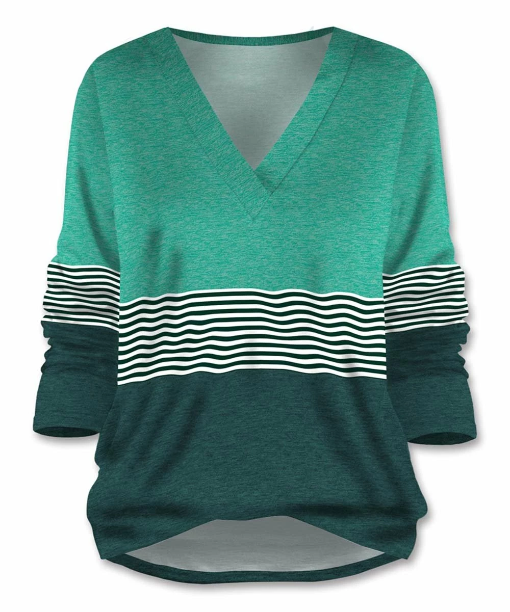 Stay on-trend and casual when you wear this v-neck top designed with a stretch-infused fabric and bold print.