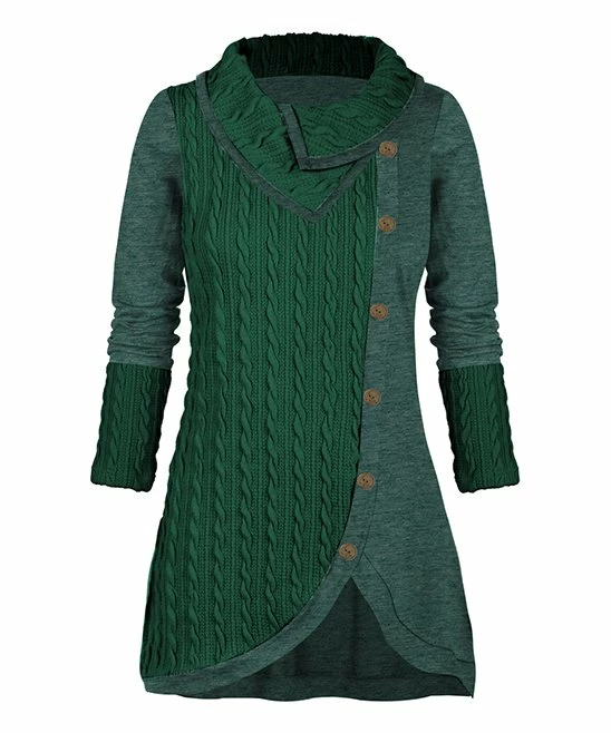 Cable-knit stitching and a cozy cowl neckline make this stretch-infused tunic a comfortable choice for casual wear. Pair with jeans or leggings for effortlessly put-together style.