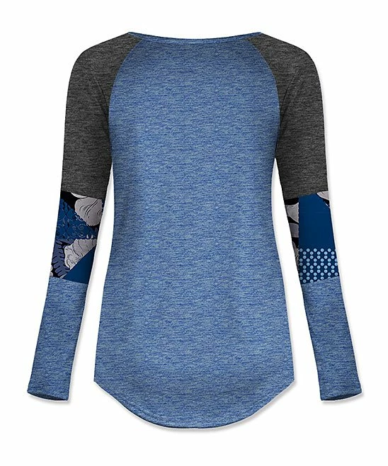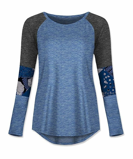 It’s all in the sleeves with this raglan tee boasting a creative print and trendy color block detail.