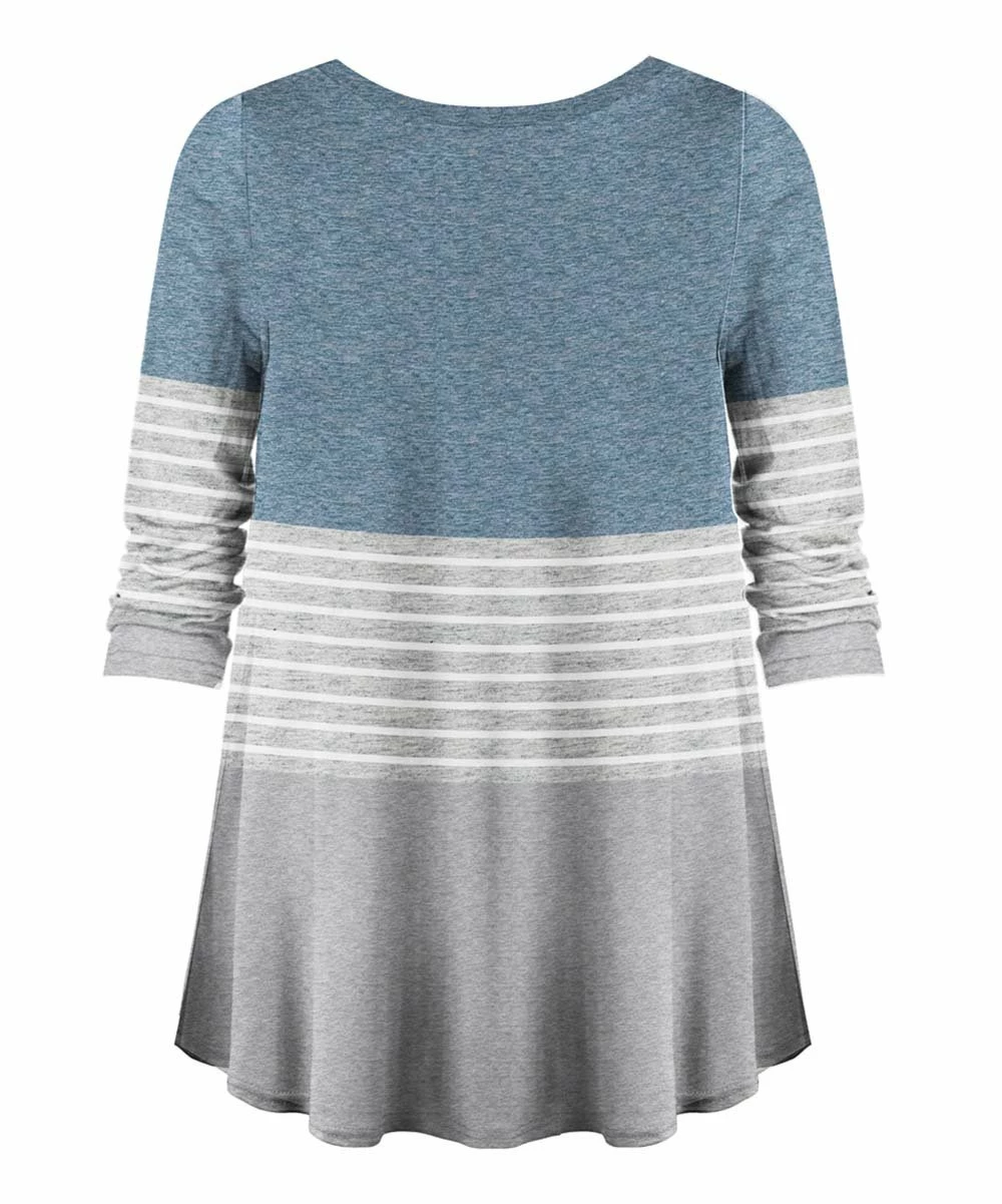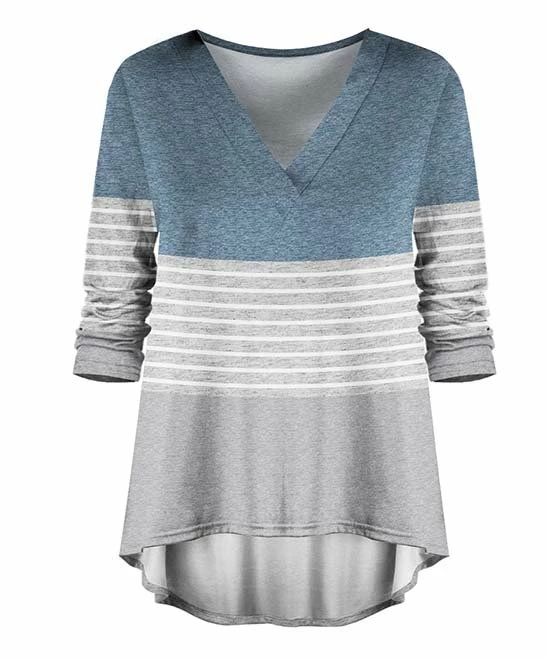 Amplify your casual closet with this v-neck top offering stretchy fabric and a subtle hi-low hemline.
