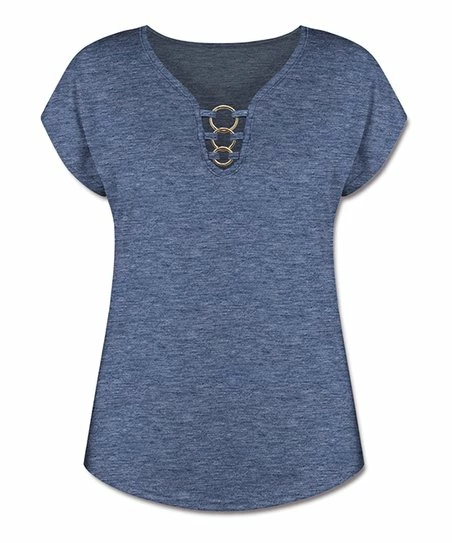 Enliven your casual wardrobe with this soft-knit top that features short sleeves and a v-neckline embellished by gleaming rings.