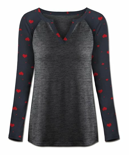 The complementary trim of whimsical detail lends a playful note to this long-sleeve top that also boasts a notched neckline for casual flair.