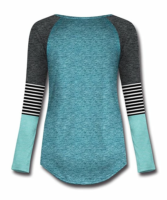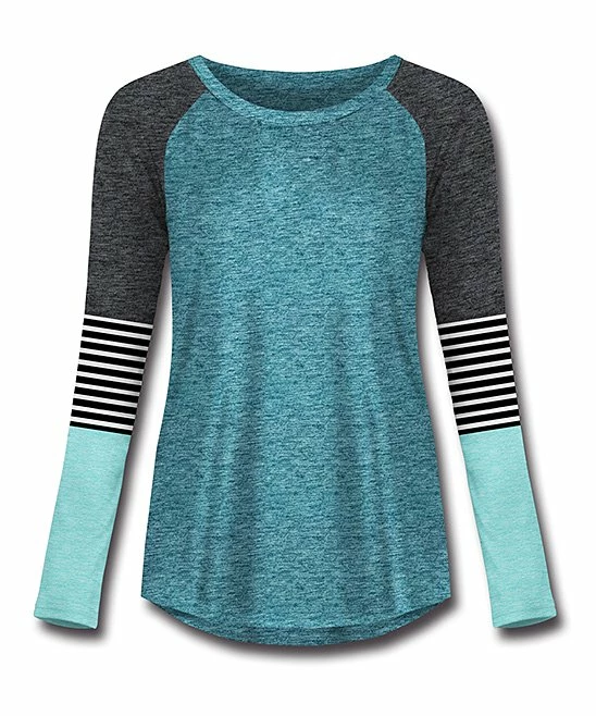 Raglan sleeves and a slightly trailing hem add a boost of style to this flowy tunic. A touch of stretch ensures all-day comfort.