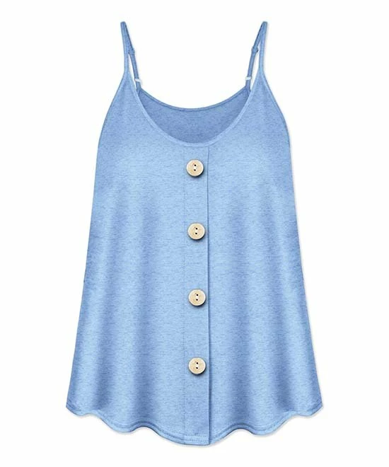 Stock your warm-weather wardrobe with this versatile solid tank that features a flowing fit and charming buttons running down the front.