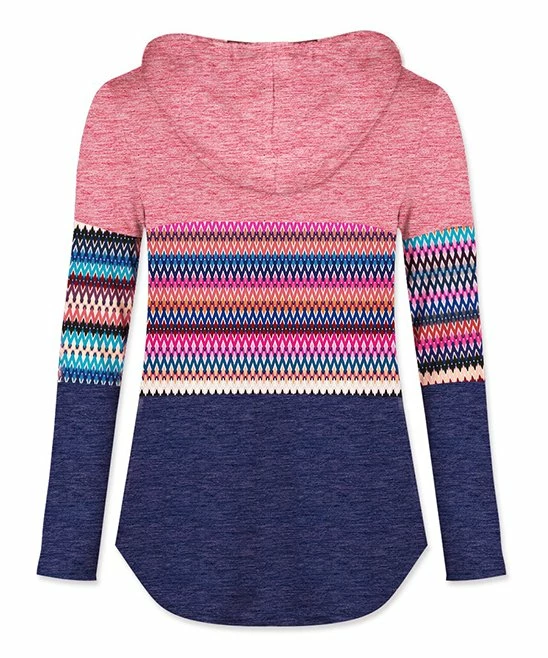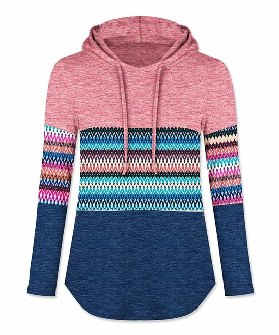 Contrasting patterned panels and a drawstring hood make this lightweight pullover a bold, cozy pick for your laid-back weekend outings.