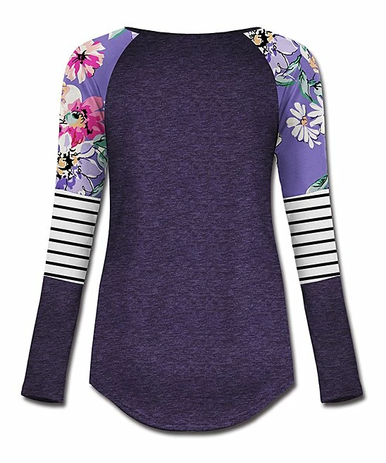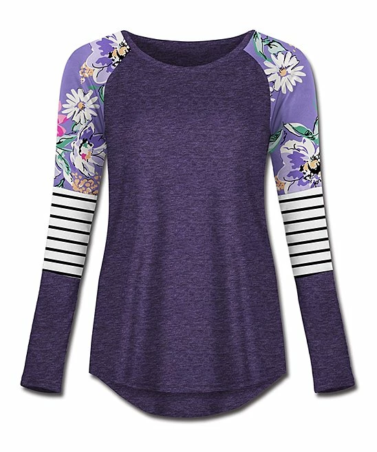 Enliven your casual wardrobe with this tee that features cozy long sleeves embellished with contrasting prints.