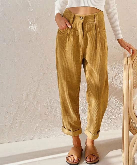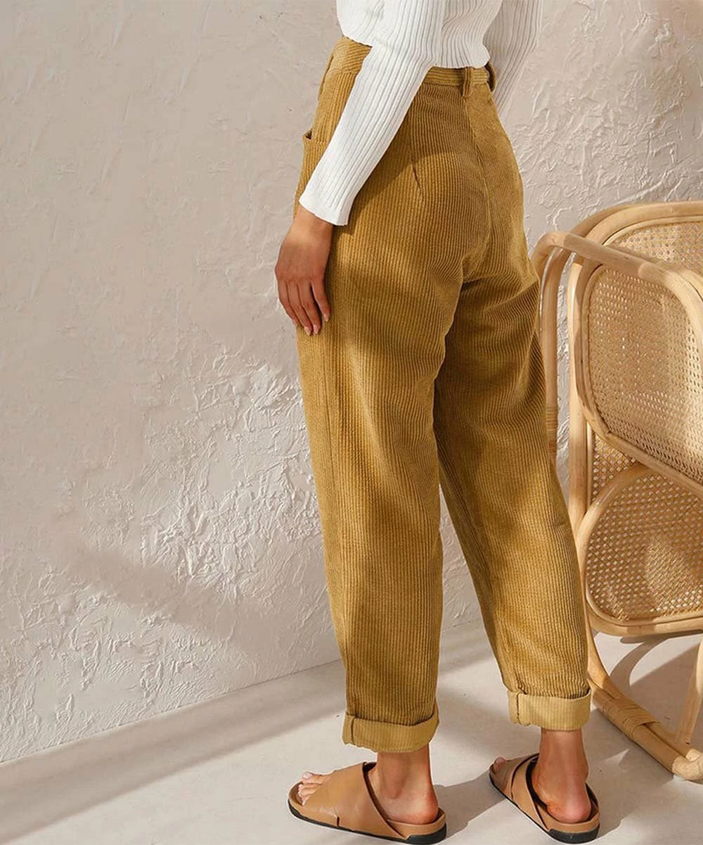 Neutral tone pants with corduroy texture for casual mixing and matching. Cuff or uncuff the legs to fit your looks.