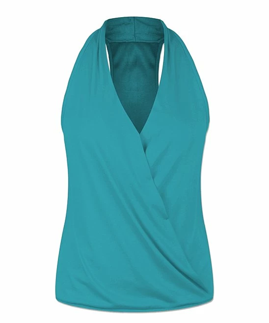 Whether you layer it beneath your favorite cardigan or wear it alone to show off your shoulders, this sleeveless top flatters with a streamlined surplice silhouette, a halter-style neckline and a hint of comfortable stretch.