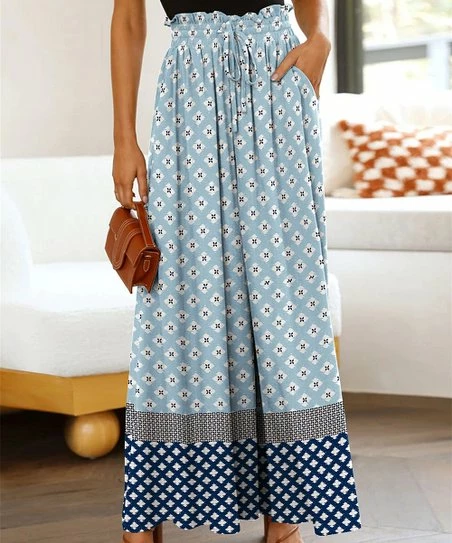 Breezy palazzo pants featuring an elastic paper bag waist, a mixed geometric pattern and handy side pockets.
