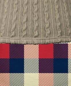 Get two looks in one with this top that features a layered look consisting of a plaid hi-low button-up peeking out from under a cable-knit sweater.