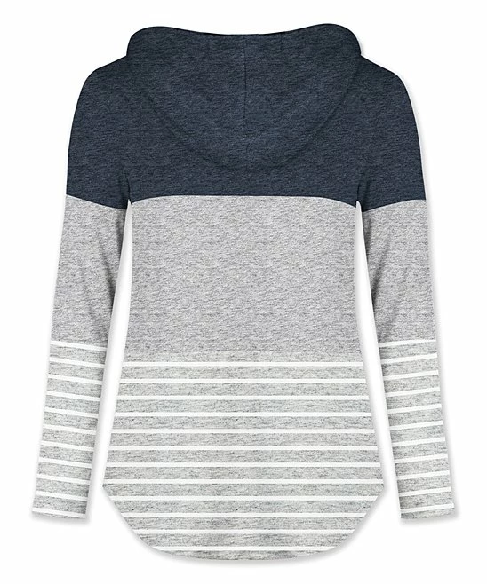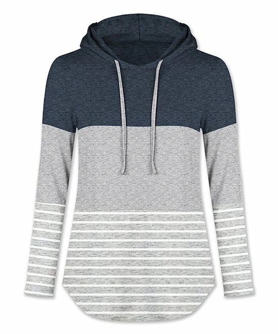 Spruce up long-sleeve layers with the sophisticated color block design of this round-hem hoodie crafted from a comfy lightweight, stretch-infused material.