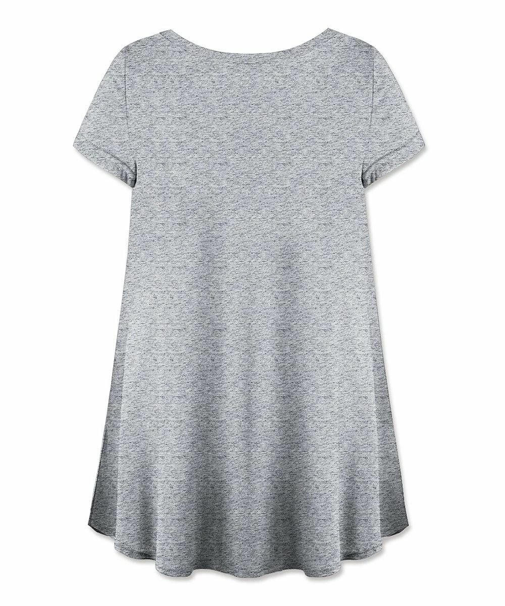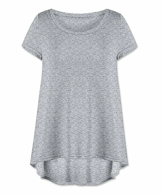 Pair this relaxed hi-low top with your favorite jeans or leggings for an easygoing look that keeps you comfy in soft, stretch-infused material. Short sleeves make it a fresh pick for warmer days.