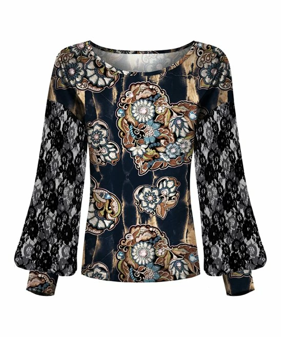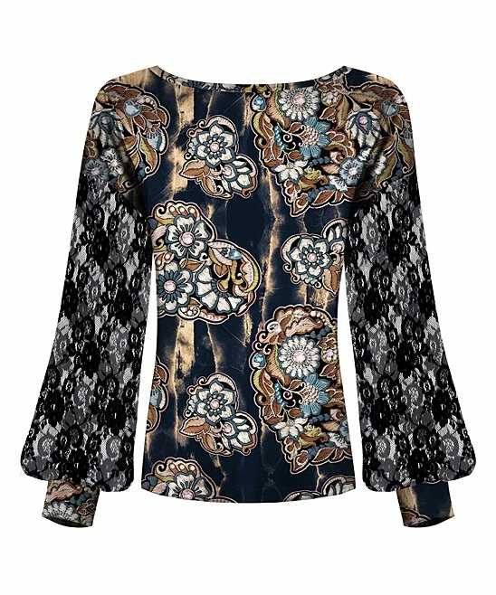Best Sale ⭐ UDEAR Red & Blue-Green Antique Floral Empire-Waist Mock Neck Tunic – 👩 Women & Plus 🛒