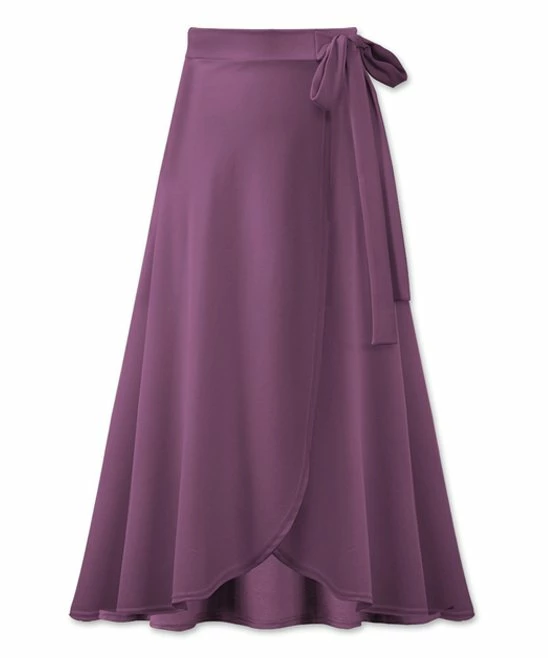 Finish off your ensembles in flowy fashion with this maxi skirt that features a side-tie wrap profile. Stretch fabric and an elastic waist team up to ensure your comfort.