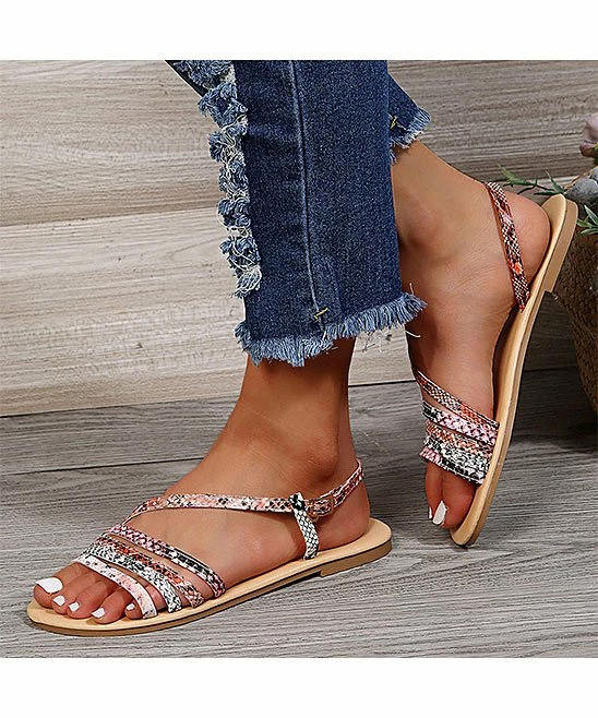 Embark on a new warm-weather adventure with these strappy sandals finished with chic snake embossed straps.