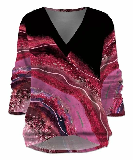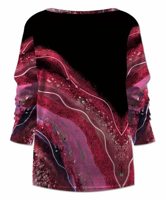 Best Sale ๐ฅฐ UDEAR Pink Purple Velvet Curved-Hem Long-Sleeve Top – ๐ฉ Women & Plus ๐งจ