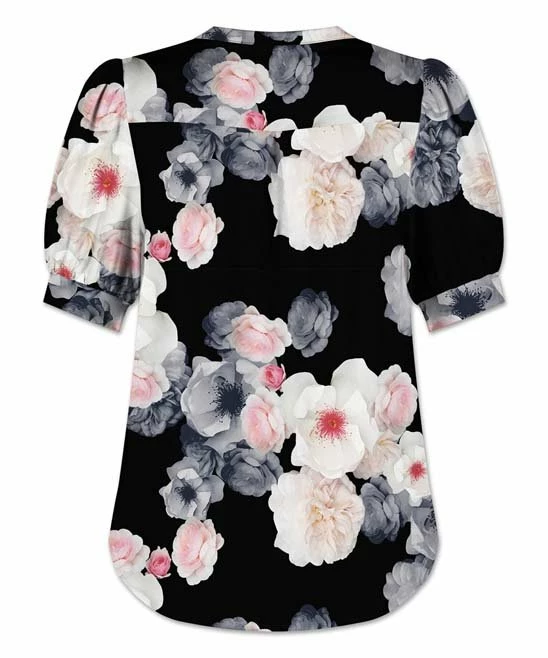 A versatile top with a notch neck accent, puff sleeves that create a softened impression and a hint of stretch for comfort.