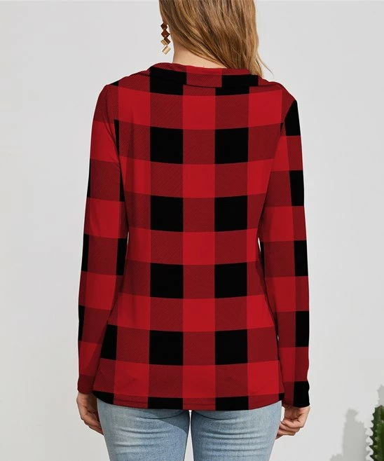 Easygoing long-sleeve top with a collared notch neckline and allover lively print.