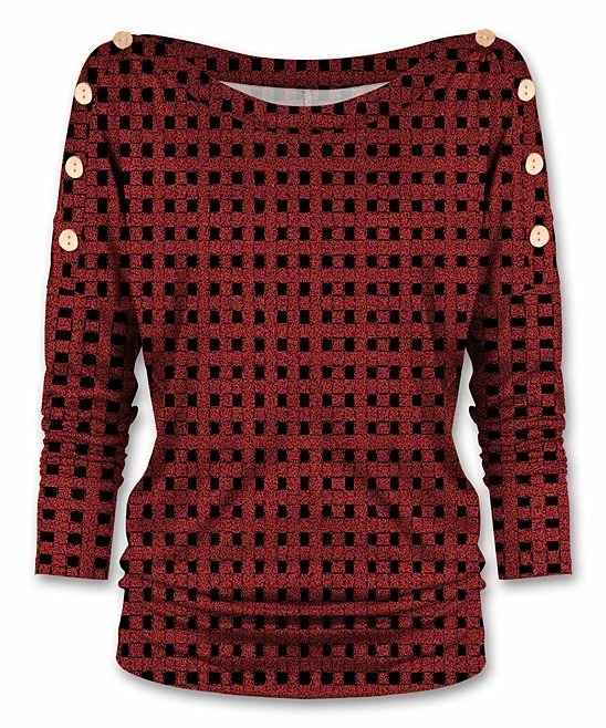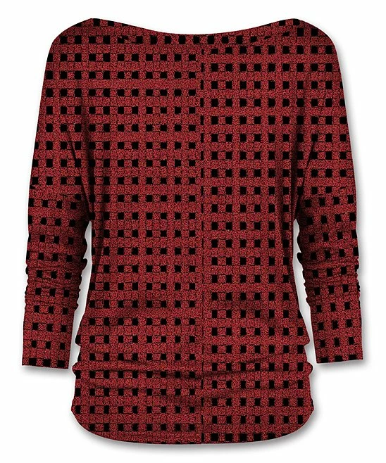 Bold colors, eye-catching charm and cozy stretch makes this boatneck top an easy choice for laid back days and running errands.