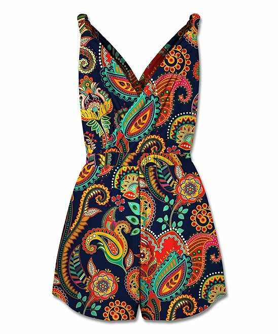 Enjoy the one-piece convenience of this sleeveless romper that features a flattering surplice neckline and an eye-catching print.