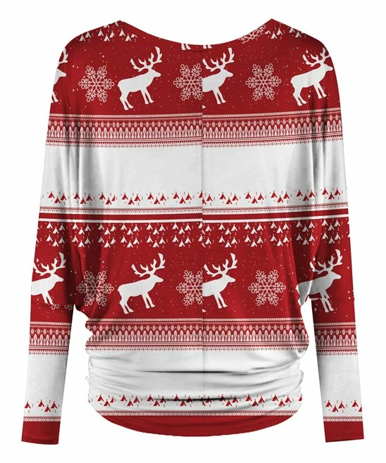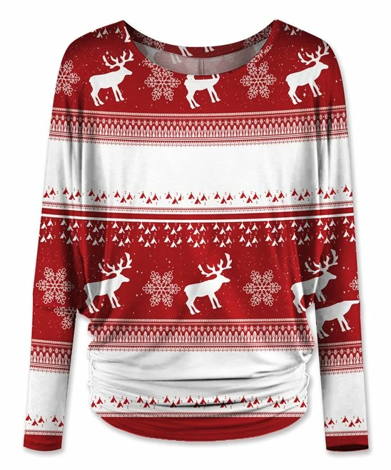 A vibrant pattern and stretch-infused material will make this long-sleeve dolman top a fast favorite in your wardrobe.