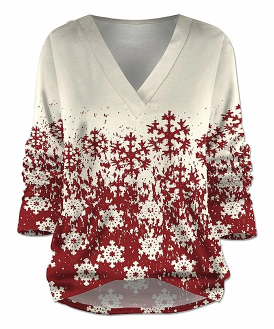 Best Pirce ๐คฉ UDEAR White & Red Abstract Hooded Long-Sleeve Peplum Top – ๐ฉ Women & Plus โจ