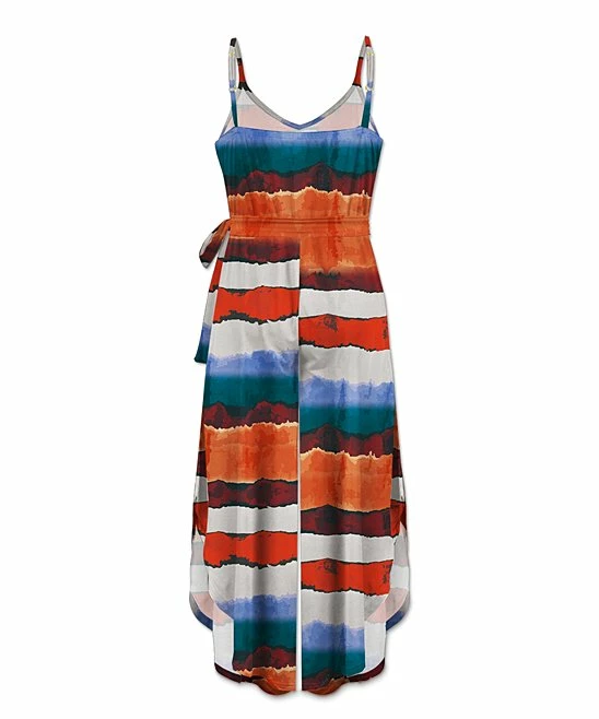 Welcome breezy vibes in this effortlessly elegant sleeveless jumpsuit boasting a flattering crisscross tie-waist and playful side-slits for a look that flows.