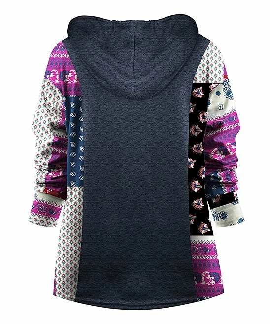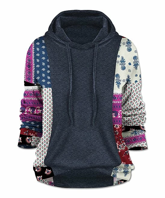 Add some color to your casual collection with this hoodie that features contrasting floral patchwork sleeves.