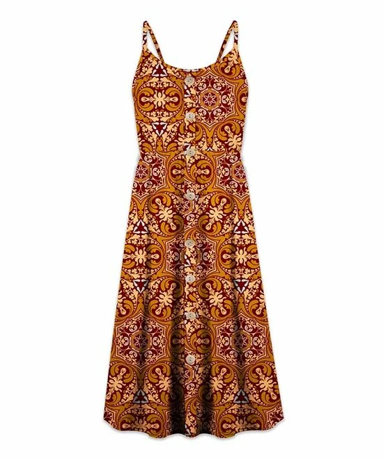 Catch the sunlight on your shoulders in this flowy sleeveless dress finished with cami straps. Buttons along the front add a whimsical touch, and a fitted waist flatters your figure.