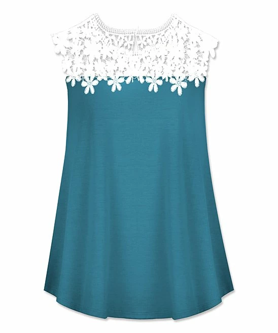 A sprinkling of lace lends feminine charm to this breezy tunic boasting a touch of stretch for daylong comfort.